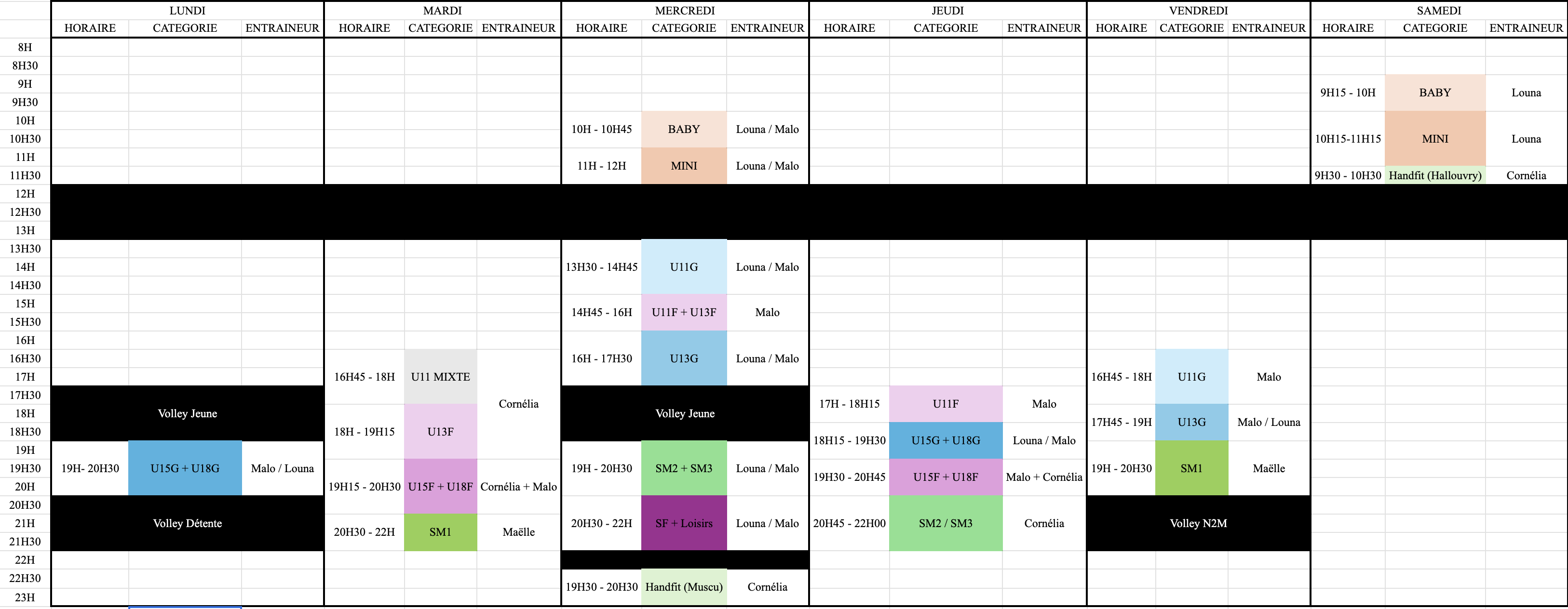 Planning Entraînements 2025 2026