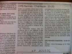 CPB RENNES-CHANTEPIE : 20-20 (11- 11)