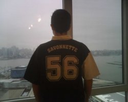 En photo, Mr Antoine LE PENVEN, trésorier de la section jusqu'en septembre, avec son maillot de de l'équipe 3 en direct de New-York.