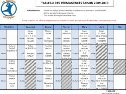 Vous trouverez ci-dessous et dans "Infos pratiques / Documents" le tableau des permanences à effectuer au cours de la saison.