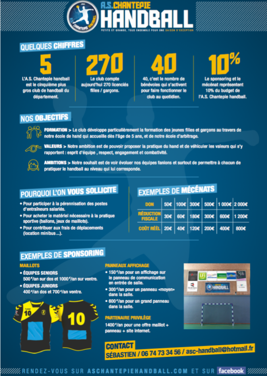 Pour vous aider à communiquer sur le sujet , nous avons produit une plaquette simplifiée présentant le club, les enjeux , les supports sponsorings / mécénats.